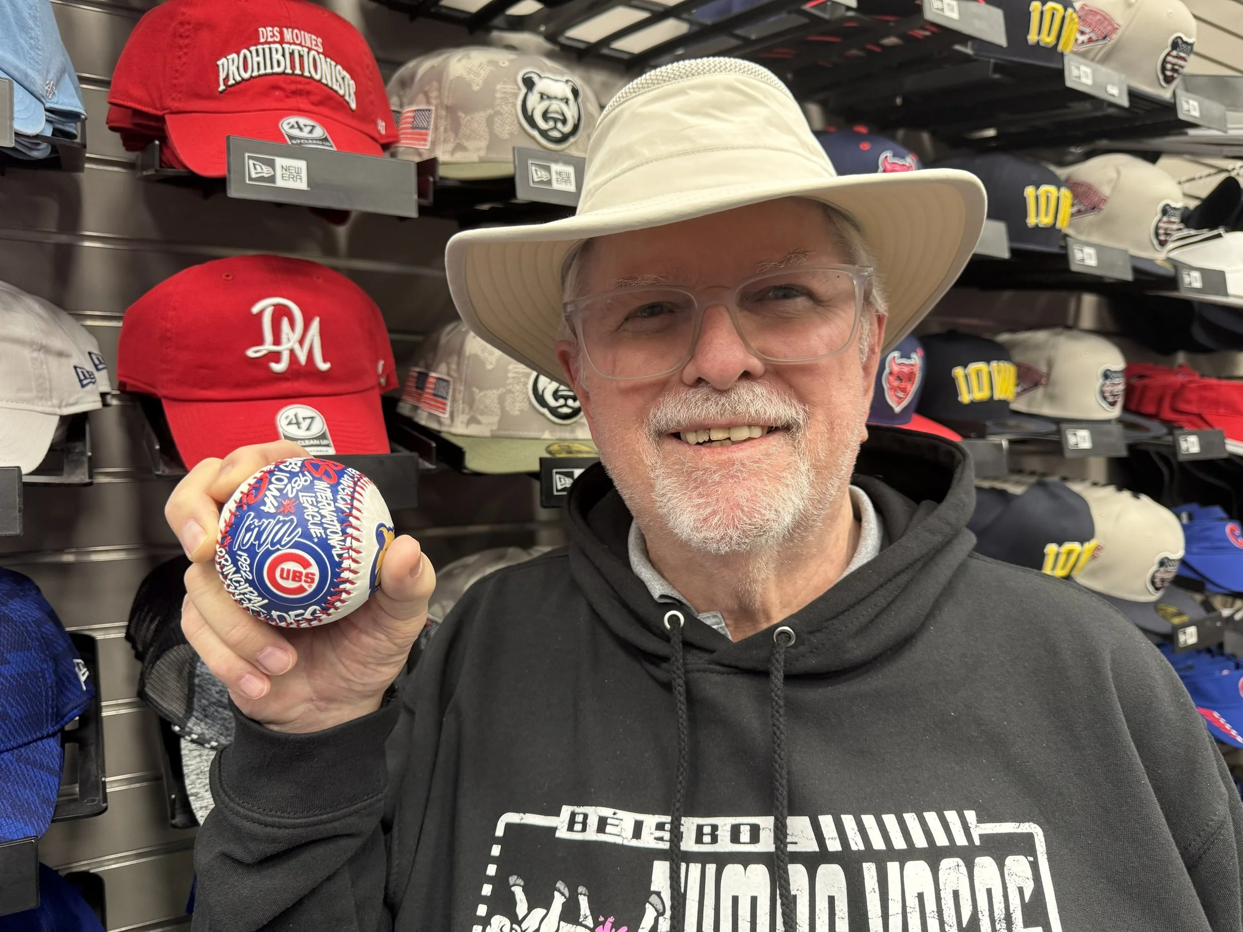 I selected a fairly conventional hat and immediately began worrying if I had made the right choice for the one and only hat I would allow myself to purchase from the Cubs. Dad found a colorful logo ball depicting Iowa Cubs history, and we were on our way.
