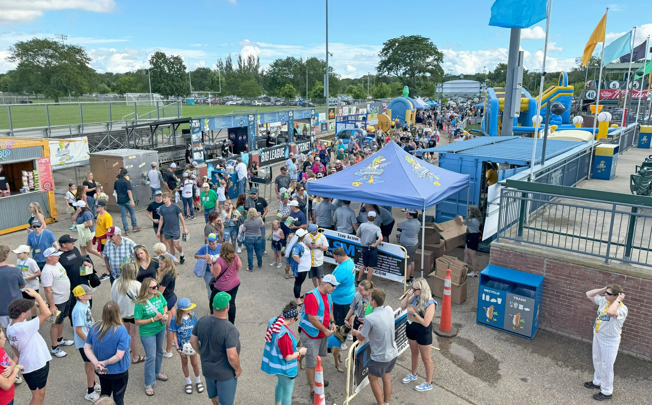 When we arrived at Werner Park, home of the Madison Mallards of the Northwoods collegiate summer league, we were given very clear directions on how to reach the main gate.The ballpark was bustling an hour before the game on this Friday night. Food vendors, carnival games, and inflatables lined the walkway from the entrance to the stands — a baseball festival in full swing.