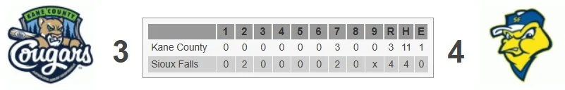 The Sioux Falls bullpen fared much better, shutting down Kane County for the final two frames and giving the Canaries the win.