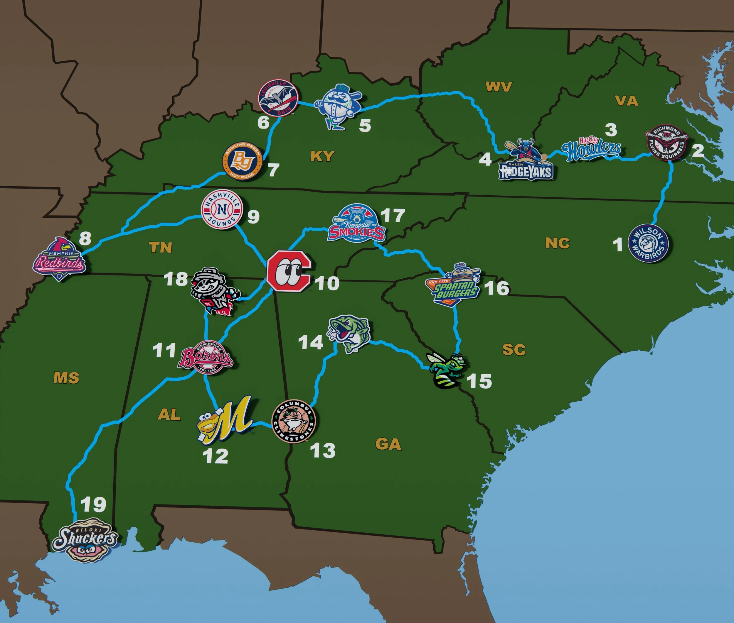 Dad and I will embark on our sixth annual regional ballpark odyssey on May 3, 2026 — this time to the South, seeing 19 ballparks in 22 days across eight states, from Richmond to Biloxi. This road trip will focus on Minor League Baseball, with 18 MiLB ballparks at all four levels and one independent Atlantic League ballpark on the schedule. As always, we’ll capture plenty of sights along the way: regional history, art, natural places, and more!